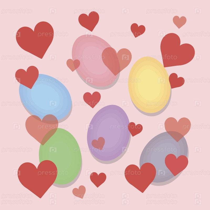 Фон пасхальные яйца яркие с красными маленькими сердцами