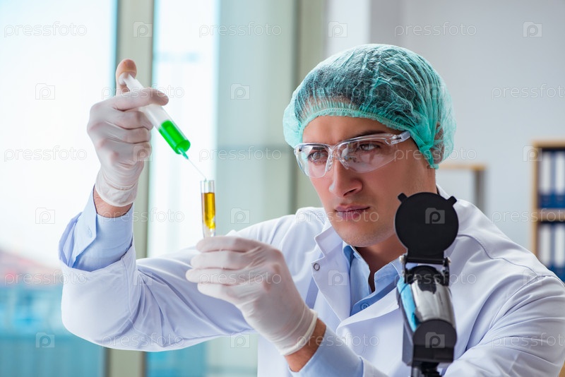 Биотехнологический ученый, работающий в лаборатории