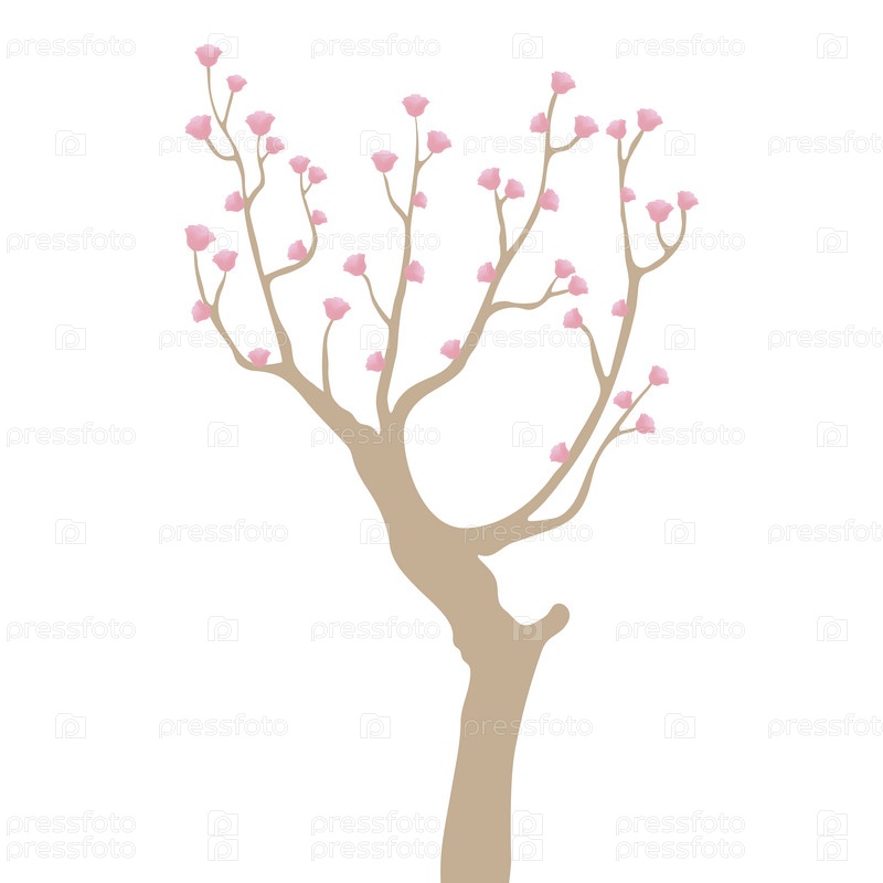 Дерево с маленькими розовыми цветами на белом фоне