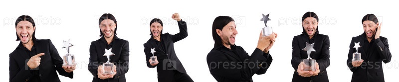 Бизнесмен с наградой 'Звезда' изолирован на белом