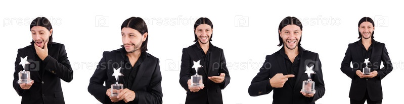 Бизнесмен с наградой 'Звезда' изолирован на белом
