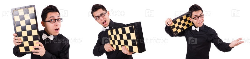Забавный шахматист изолирован на белом