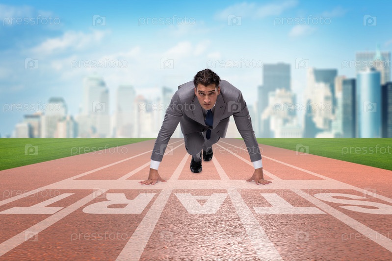 Бизнесмен с низким началом начинает работать