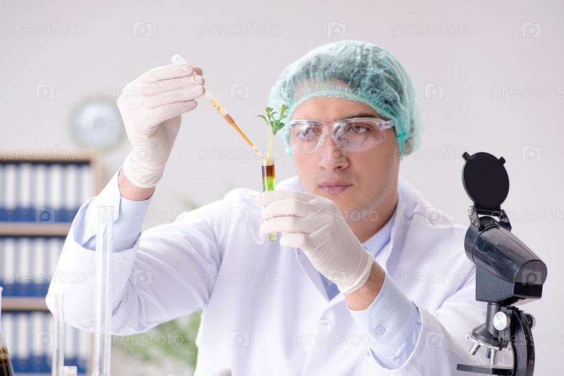 Концепция биотехнологии с ученым в лаборатории
