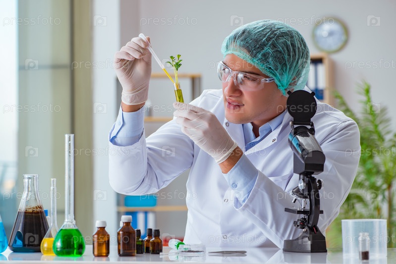 Биотехнологический ученый, работающий в лаборатории