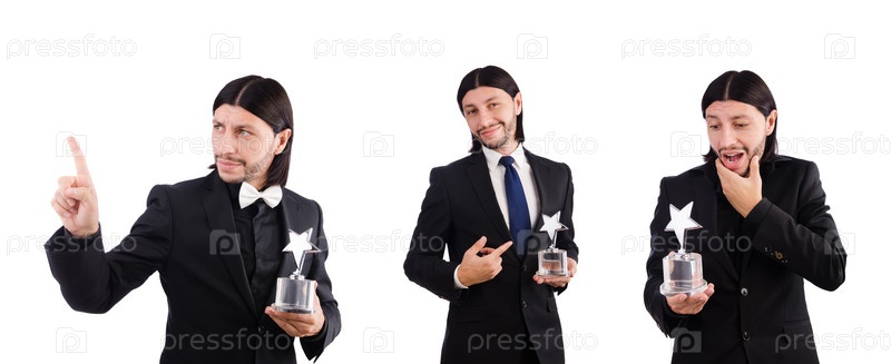 Бизнесмен с наградой 'Звезда' изолирован на белом
