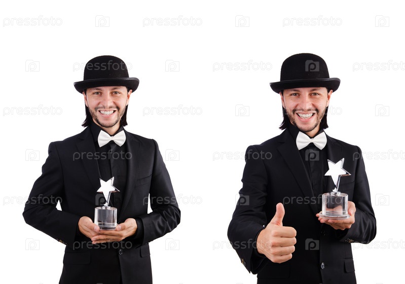 Бизнесмен с наградой 'Звезда' изолирован на белом