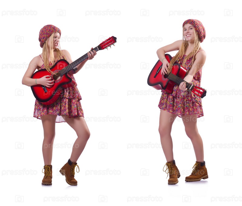 Гитаристка женщина изолирована на белом