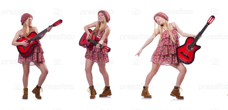 Гитаристка женщина изолирована на белом