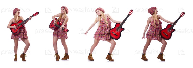 Гитаристка женщина изолирована на белом