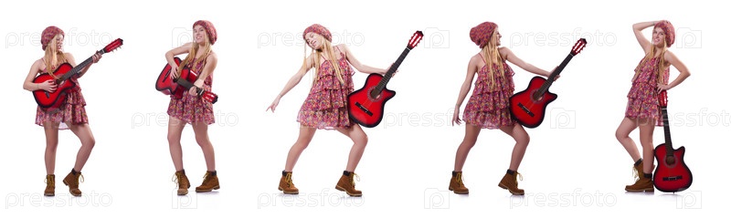 Гитаристка женщина изолирована на белом