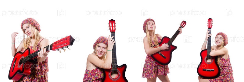 Гитаристка женщина изолирована на белом