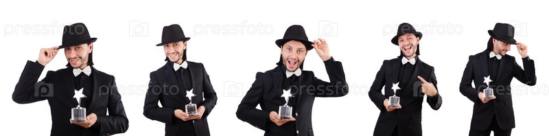 Бизнесмен с наградой 'Звезда' изолирован на белом