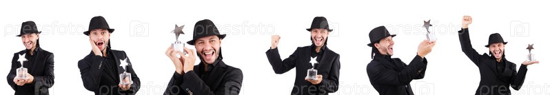 Бизнесмен с наградой 'Звезда' изолирован на белом