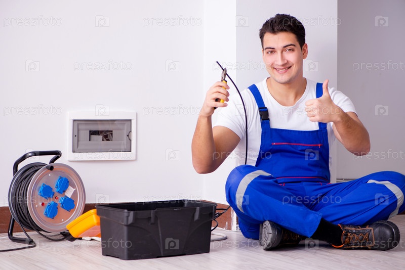 Мужчина, выполняющий ремонт электрического оборудования дома