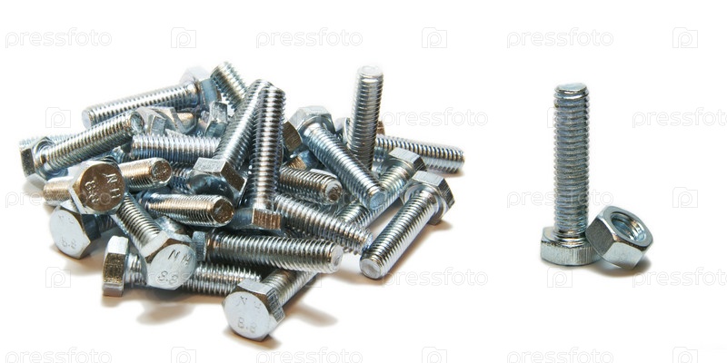 Болты и гайки, изолированные на белом фоне