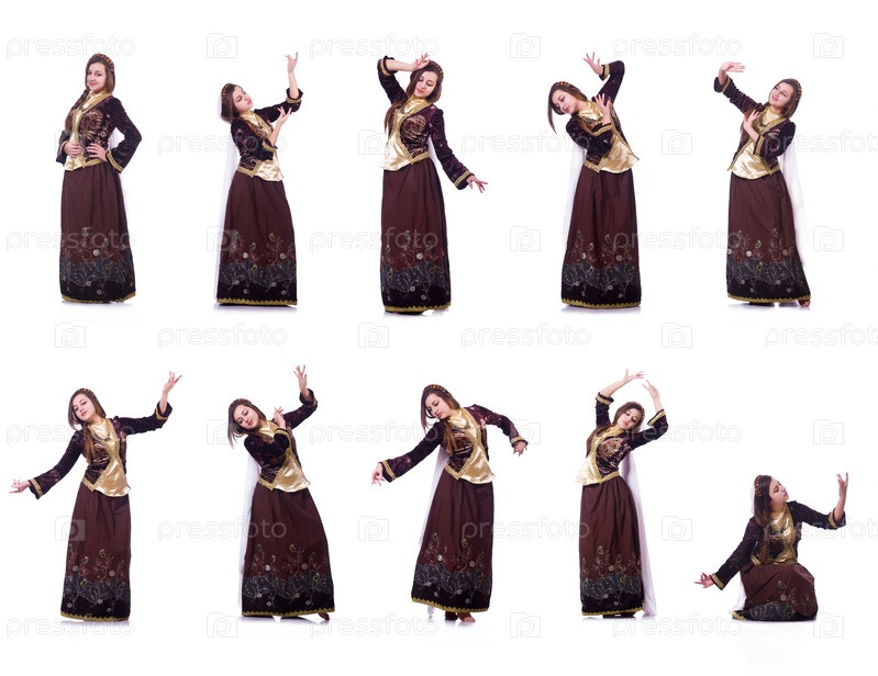 Молодая леди танцует традиционный азербайджанский танец