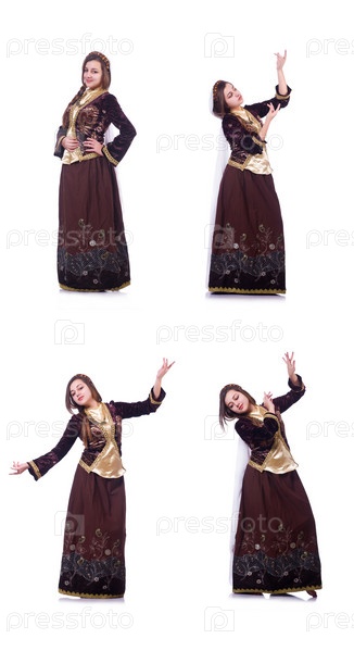 Молодая леди танцует традиционный азербайджанский танец