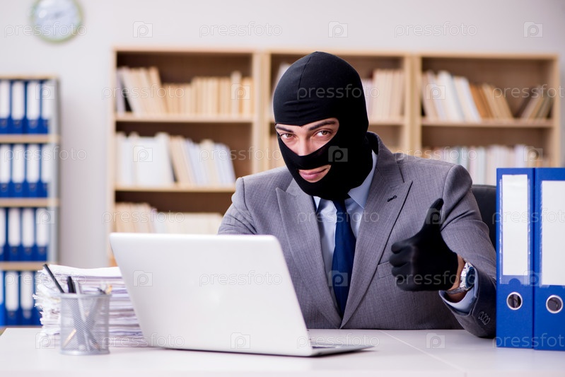 Преступный бизнесмен с балаклавой в офисе