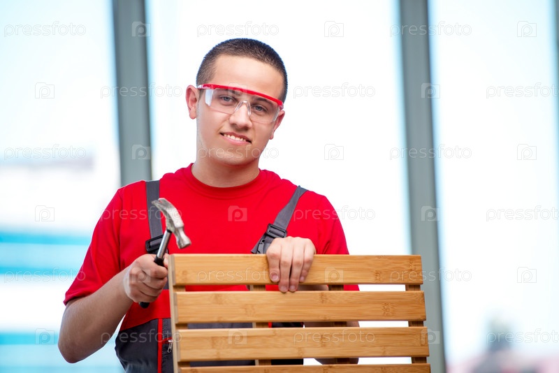Молодой плотник мебели в промышленной концепции