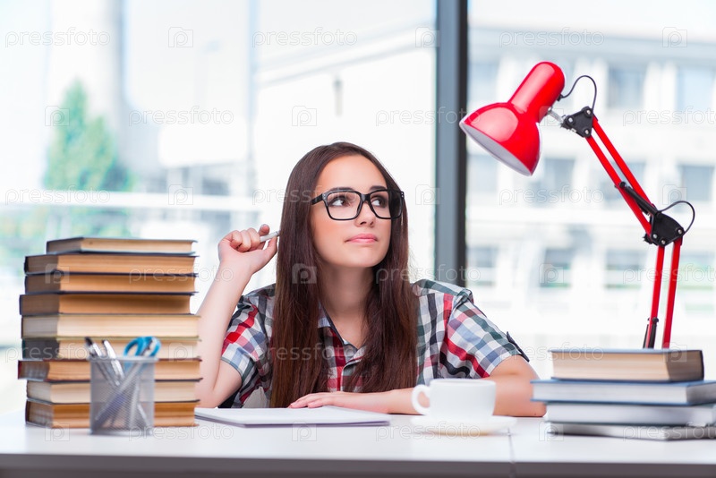 Молодая студентка готовится к экзаменам в колледж