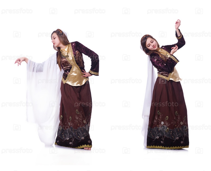 Молодая леди танцует традиционный азербайджанский танец