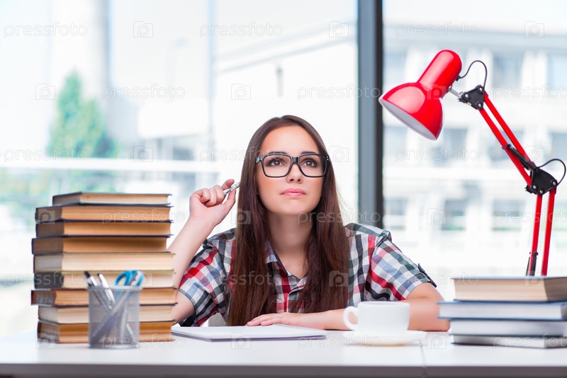 Молодая студентка готовится к экзаменам в колледж