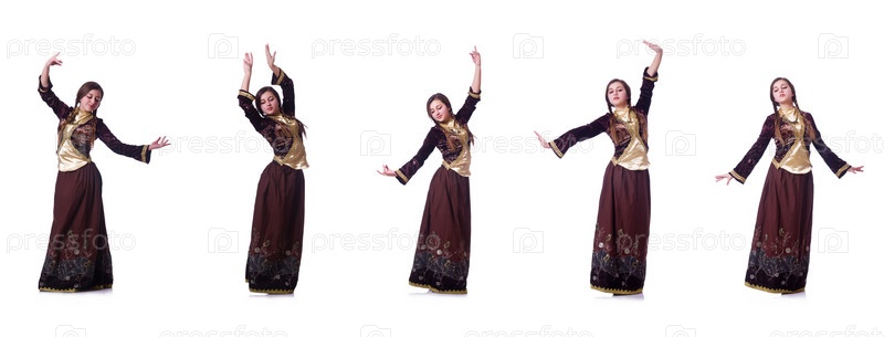 Молодая леди танцует традиционный азербайджанский танец