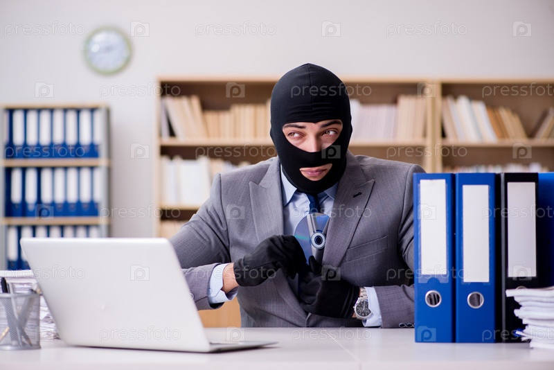 Преступный бизнесмен с балаклавой в офисе