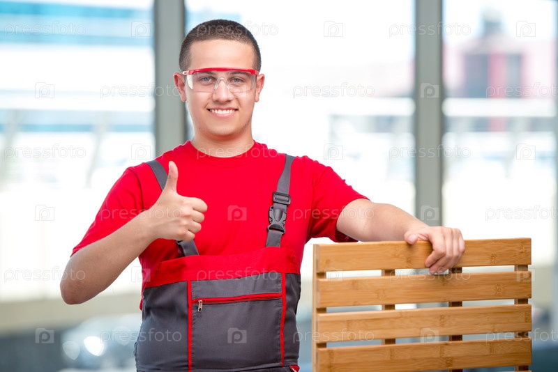 Молодой плотник мебели в промышленной концепции