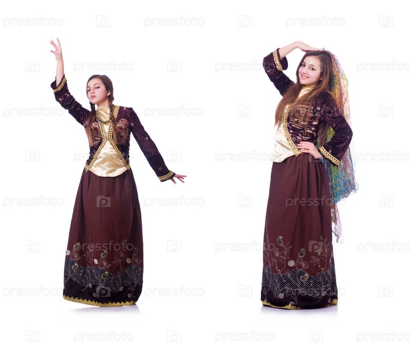 Молодая леди танцует традиционный азербайджанский танец