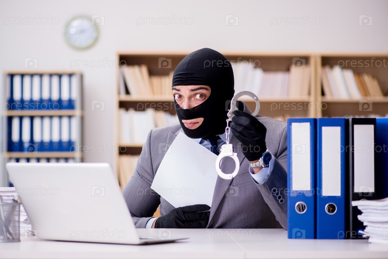 Преступный бизнесмен с балаклавой в офисе