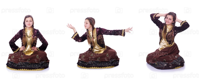 Молодая леди танцует традиционный азербайджанский танец