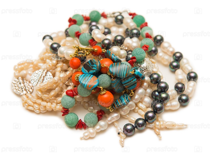 Многие ожерелья изолированы на белом фоне