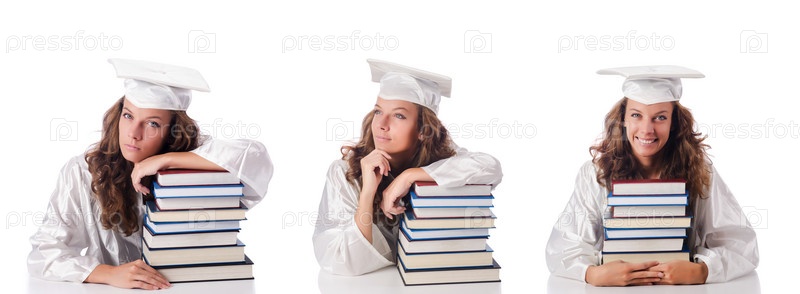 Молодой студент изолирован на белом