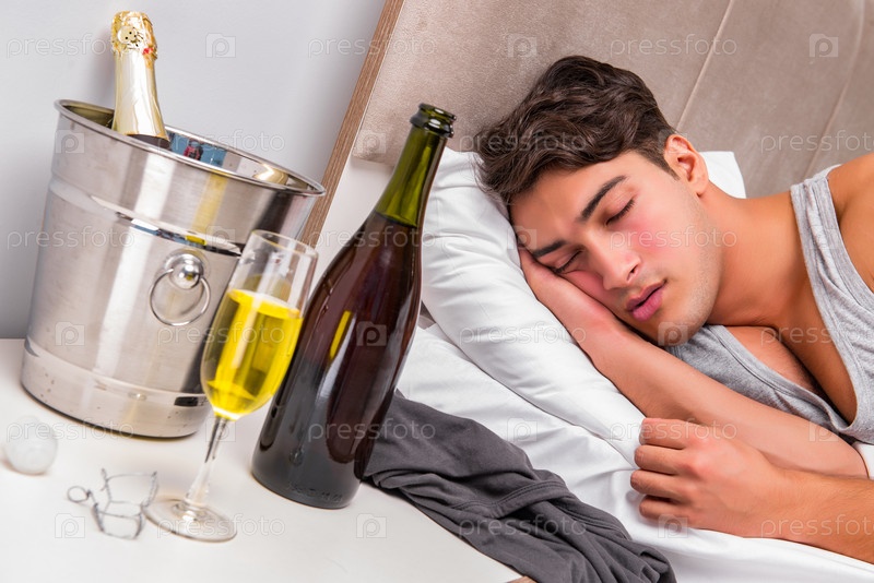 Мужчина в постели после вечеринки - Концепция похмелья