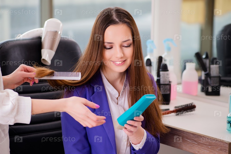 Женщина занимается стрижкой в салоне красоты