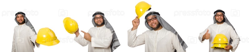 Концепция с арабским человеком, изолированным на белом