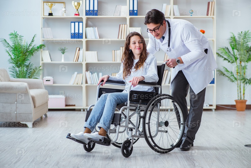Пациент-инвалид на инвалидной коляске, посещающий врача для регулярного осмотра