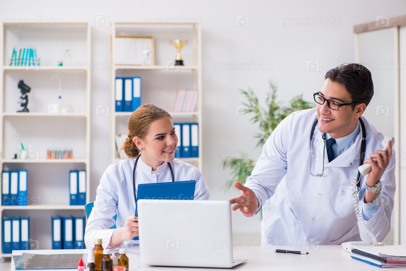 Врач и женщина обсуждают в больнице мужчину и женщину