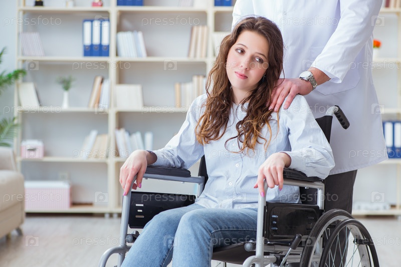 Пациент-инвалид на инвалидной коляске, посещающий врача для регулярного осмотра
