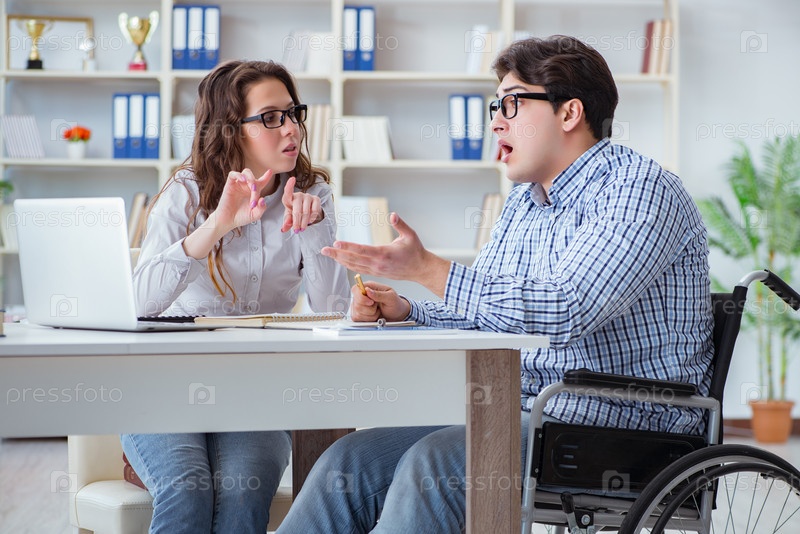 Студент-инвалид, изучающий и готовящийся к экзаменам в колледже