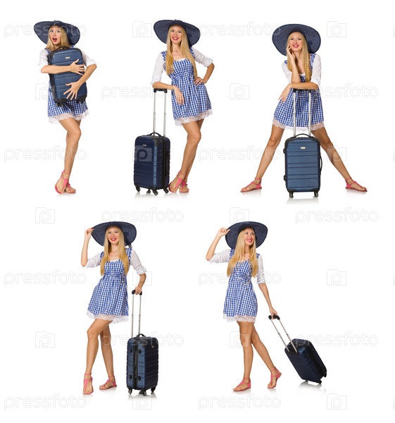 Женщина, готовая к летнему путешествию изолирована на белом