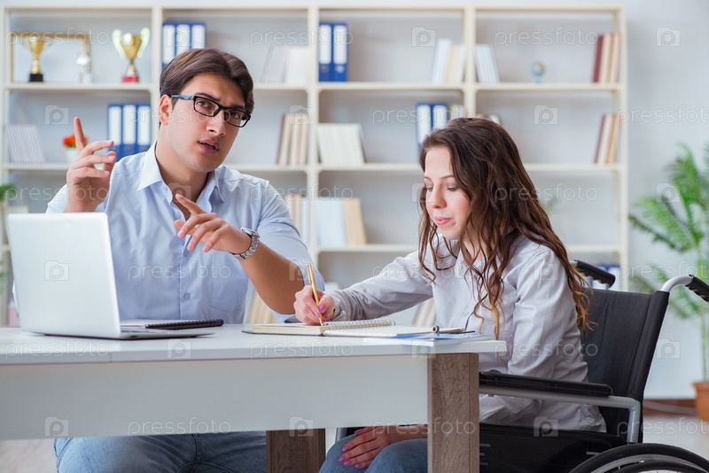Студент-инвалид, изучающий и готовящийся к экзаменам в колледже