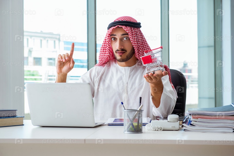 Арабский бизнесмен, работающий в офисе