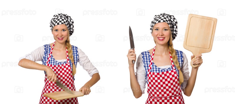 Женщина-кухарка изолирована на белом фоне