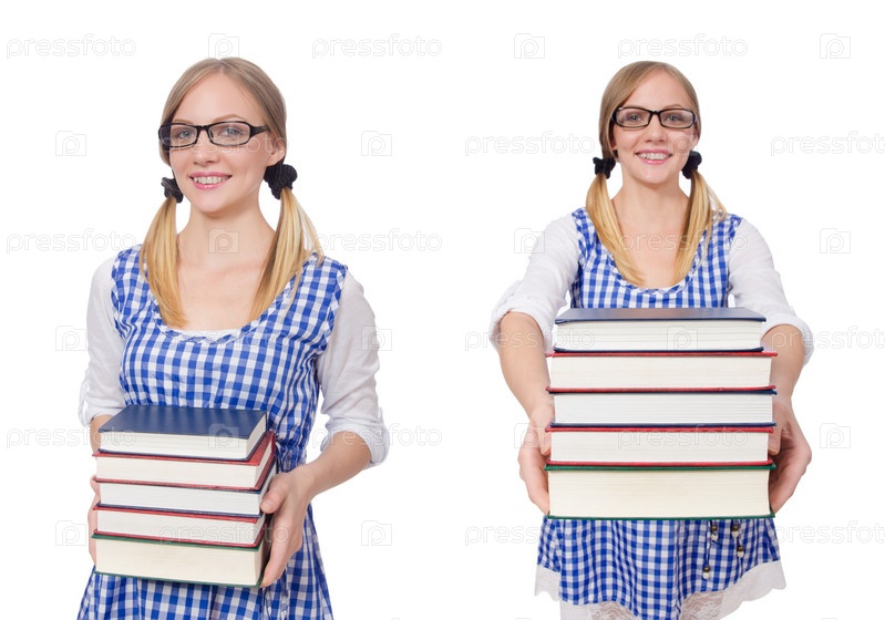 Забавный студент со стопкой книг