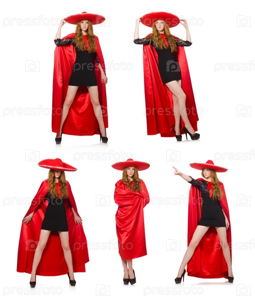 Мексиканская женщина в красной одежде на белом