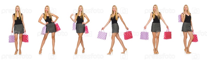 Женщина с сумками для покупок изолирована на белом