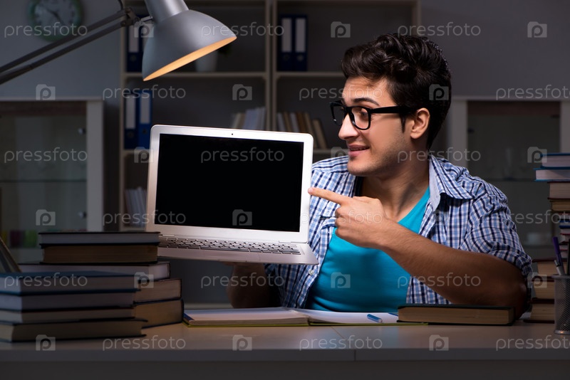 Студент готовится к экзаменам поздно вечером дома